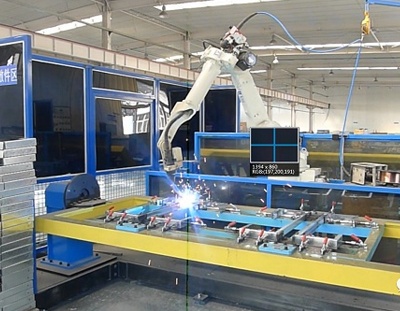 2018-06該項(xiàng)目運(yùn)用45臺(tái)工業(yè)機(jī)器人、10套移載機(jī)、30套伺服變位機(jī)及全線自動(dòng)化物流輸送,實(shí)現(xiàn)了年產(chǎn)30萬臺(tái)爐體產(chǎn)量。從板材開卷、沖壓成型、焊接、檢測(cè)等工序,實(shí)現(xiàn)了從原材料到成品的全自動(dòng)化過程,可視...